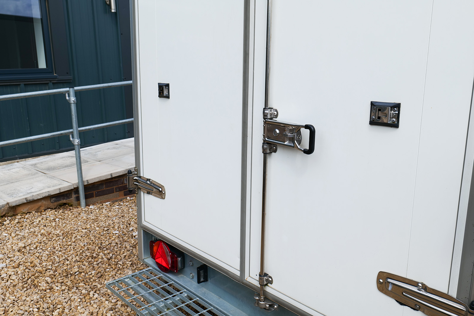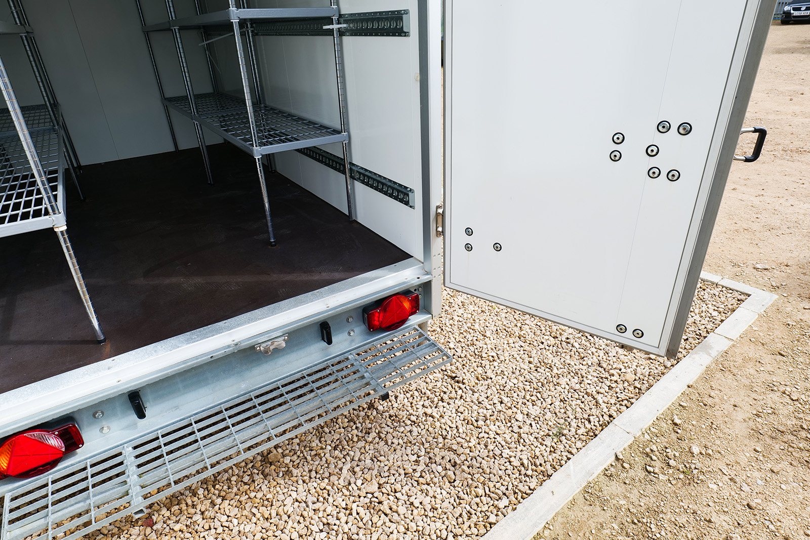 The entrance to the fridge trailer has a none slip step for internal access.